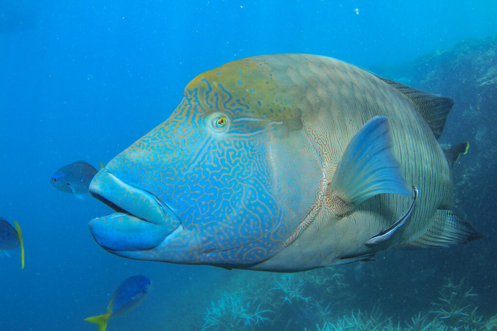 One of the most iconic fish on the Great Barrier Reef, the Māori wrasse is known for its intelligence and vivid colouring. Every individual starts life as a female, and around age 15, some transition into males. These males are large, blue, and sport a distinctive hump on their head, while females are smaller and brown or green.